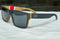 Matte Black Frames made from 70% Recycled Plastic fitted with Polarized Lenses. Black Painted Bamboo Temples held together by Stainless Steel Spring Hinges.
